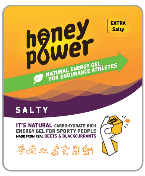 HoneyPoweri UUS extra salty geel. Süsivesikuterikas energiageel sportlastele ja aktiivsetele inimestele, mis tehtud eestimaisest meest, peedist ja mustsõstrast. Maitset rikastab kergelt tajutav, mineraaliderikas, himaalaja sool. Soovitame tarbida 1-2 geeli 15 minutit enne starti ning 1-2 geeli iga 30 minuti järel. Mugav ja kiiresti avatav pakend.